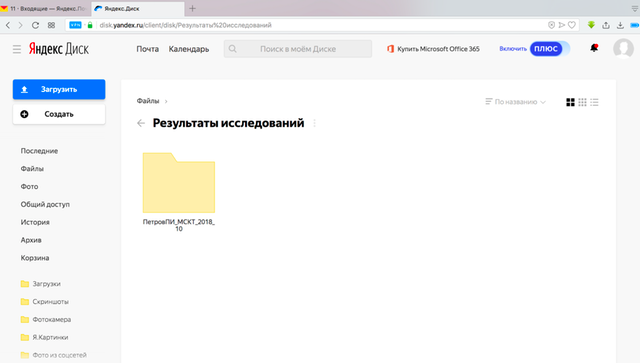в которой можно создавать новые папки и переместить туда файлы с результатами исследований: