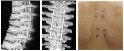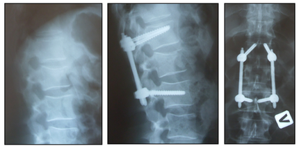 Рис. 3. Фиксация нескольких повреждённых сегментов позвоночника без существенной коррекции и реконструкции.
