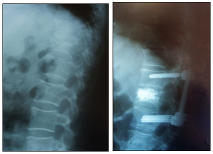 Рис. 2. Окончательная фиксация повреждённого сегмента позвоночника без существенной коррекции и реконструкции